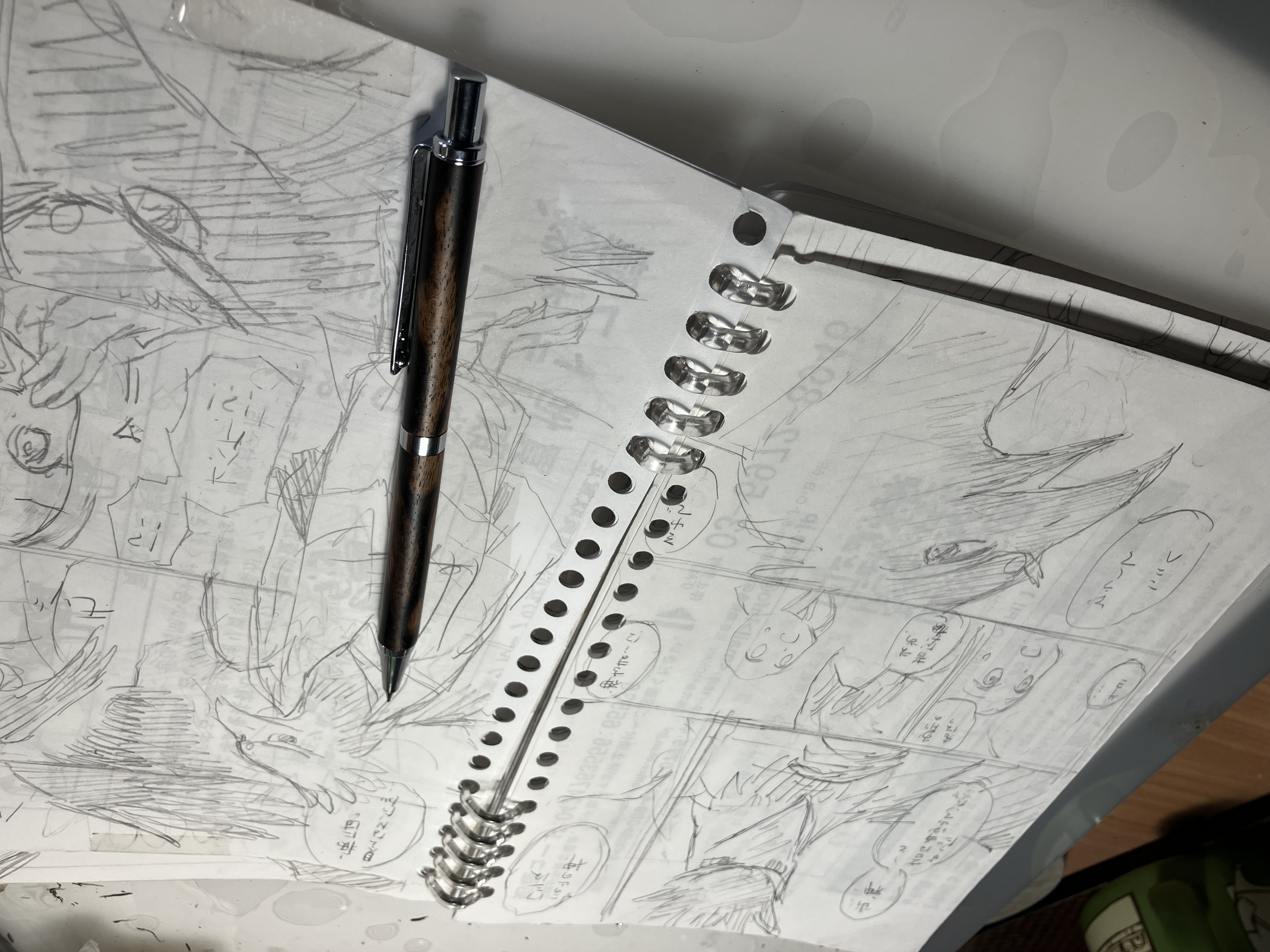もらってきた不要紙に、女子文具博で買ったルーズリーフパンチで穴を開けてとじたりいれかえたりしてネームに使ってみたら、今回すごく捗りました。